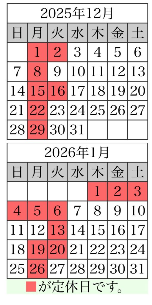 2025年9月24日 / 最終更新日 : 2025年9月24日 utage 情報 12月、1月のおやすみです。 12月31日の営業は15時までになります。 Follow me! FacebooktwitterHatenaPocket